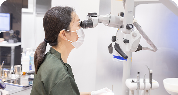 歯の細部を肉眼の視野の約20倍拡大して観察できる装置です。肉眼では見えない細かな部分まで確認できるため、根管治療や精密な歯科治療において、より確実で丁寧な治療が可能です。