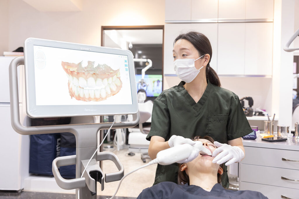 歯並びやかみ合わせを3Dスキャンで精密に測定する最新のデジタル機器です。従来の型取りの不快感がなく、治療計画をより正確に立てることができ、スムーズに治療を進めることができます。