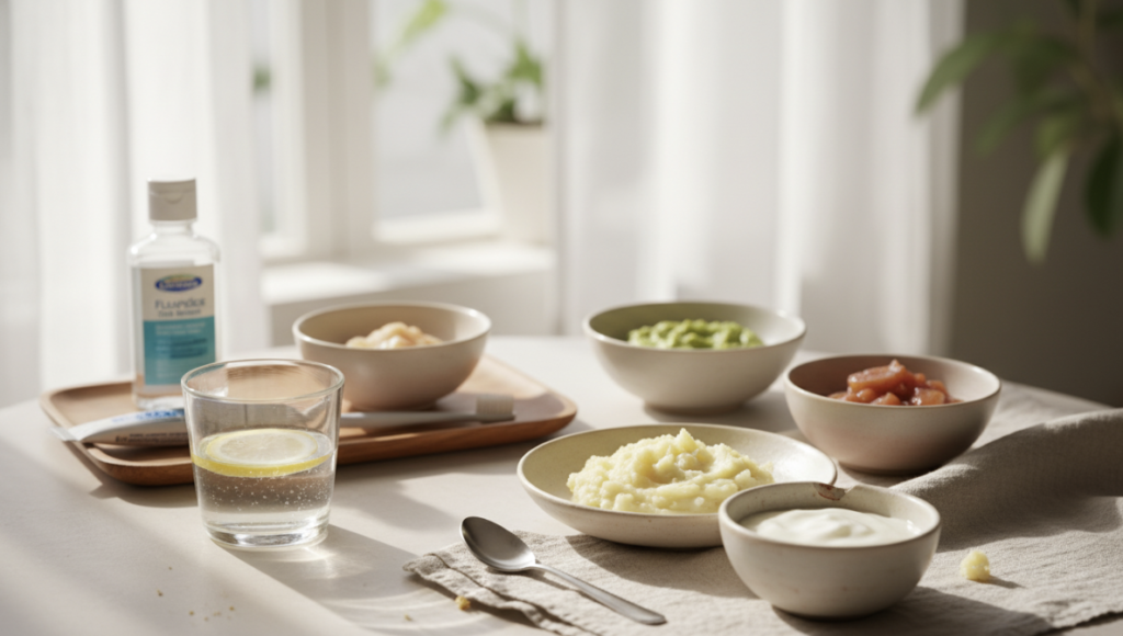 おかゆ、リゾット、煮込みうどん、茶わん蒸し、ヨーグルトなど、噛む力をあまり必要としない食べ物がおすすめです。逆に、硬い肉や繊維質の多い野菜は、痛みが落ち着くまで避けたほうが無難です。食事を楽しめないのはつらいかもしれませんが、痛みのピークは数日で過ぎます。その期間だけでも食事内容を調整することで、快適に過ごせます。