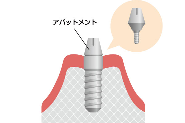 インプラントが骨に安定したら、アバットメントという部品を取り付けます。アバットメントは、最終的な人工歯を取り付けるための土台になります。