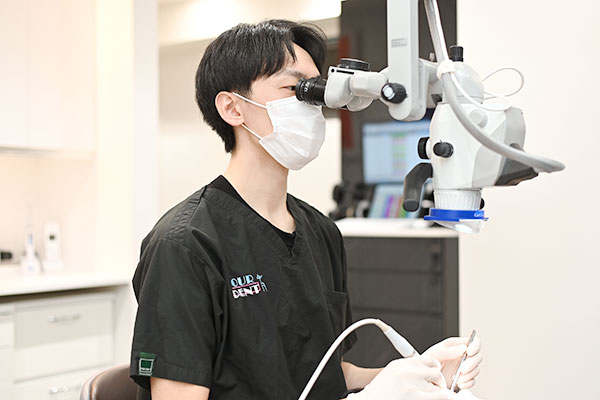 セラミックの詰め物や被せ物は、陶器のような素材で、ツヤや透明感があり、自然な歯の色に近い仕上がりになります。当院では、マイクロスコープを使って、繋ぎ目に段差ができないように丁寧に治療を行っています。